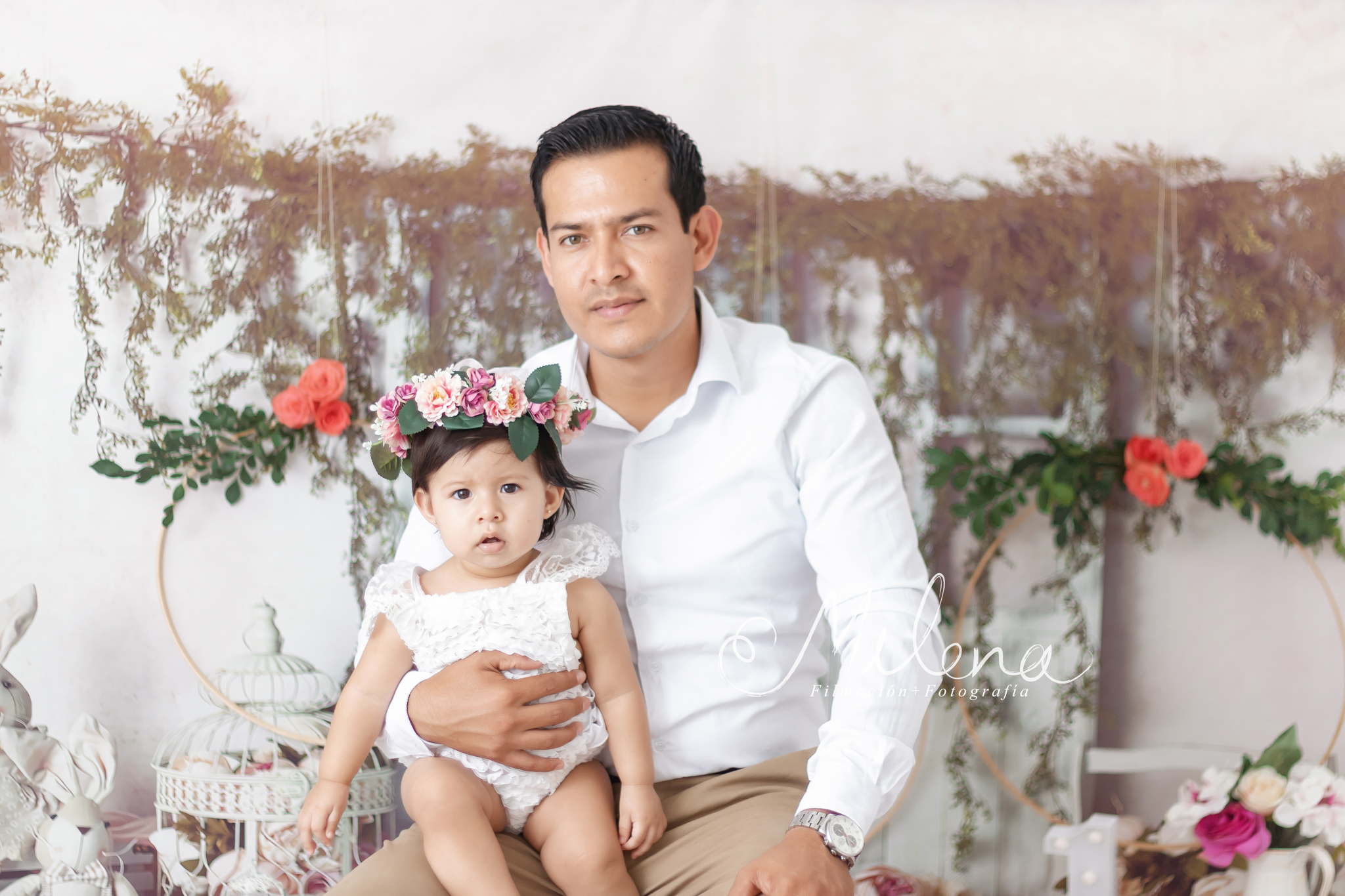 Sesión de fotos smash the cake boho en estudio en Tuxtla Gutiérrez. Convertimos el sueño de mamá en realidad: tierna, con un toque floral y boho, la celebración del primer cumpleaños de bebé.